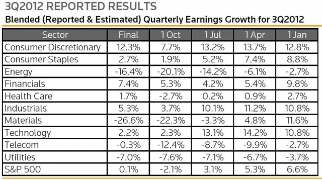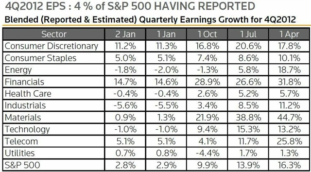 Analytici podle agentury Thomson Reuters (analýza ze 3. ledna 2013) odhadují růst zisku o 2,8 %, což představuje jisté zlepšení po neduživém 0,1% růstu v předešlém čtvrtletí.