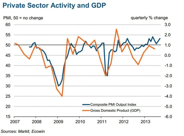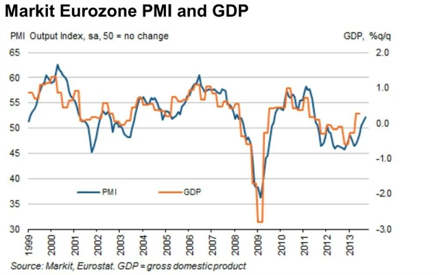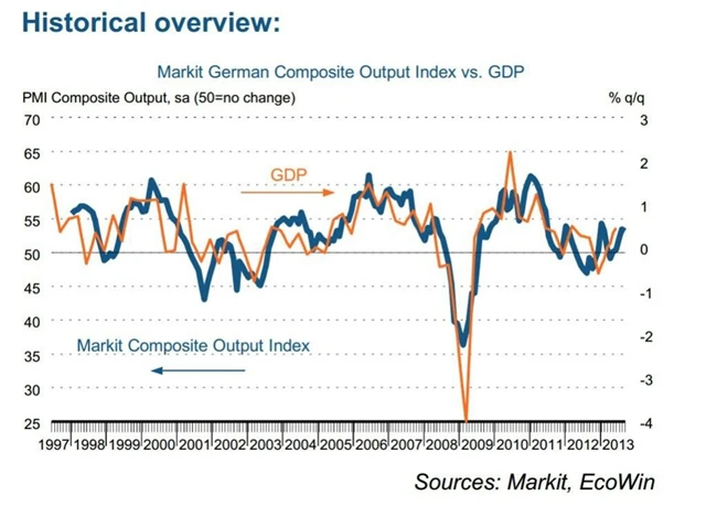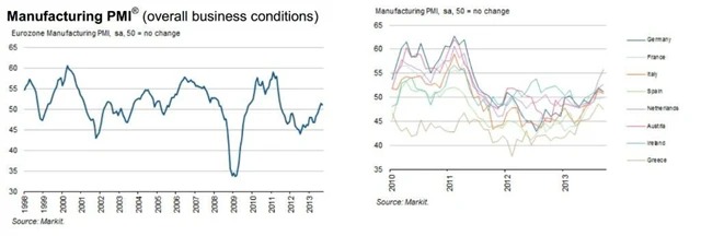 "Finální výsledky PMI potvrzují předchozí předpovědi, totiž, že si eurozóna užila ve třetím čtvrtletí nejsilnější expanzi za poslední dva roky," říká hlavní ekonom společnosti Markit Chris Williamson. "Růst táhne Německo, ale Francie se také navrátila k expanzi. Povzbudivá jsou i čísla z Irska (55,7 bodu) a Itálie (52,8 bodu), které nabírají dech, a stabilizovalo se i Španělsko (49,6 bodu), kde slabou domácí poptávku vyvažuje export," dodává Williamson.