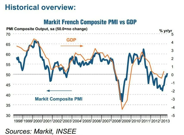 Index nákupních manažerů ve službách ve Francii se v září vyšplhal nad padesátibodovou hranici, což znamená, že sektor začal poprvé po 18 měsících opět expandovat. Dosáhl 51 bodů po srpnových 48,9 bodu, což představuje 20měsíční maximum. Kompozitní index také vyskočil na 20měsíční maximum 50,5 bodu ze srpnových 48,8 bodu. Expanzi sektoru nakoply především nové firmy, které do odvětví vstoupily.
