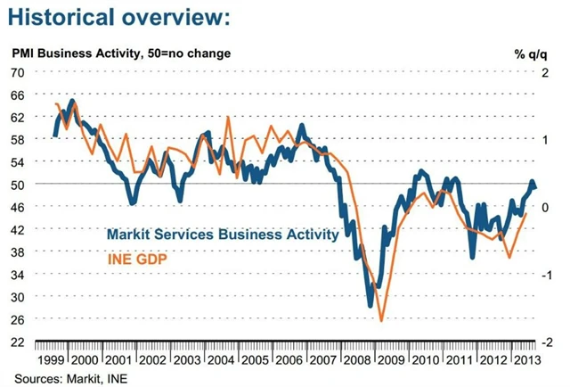 Sektor služeb ve Španělsku v září nečekaně udělal krok zpět. Index nákupních manažerů dosáhl jen 49 bodů po srpnovém výsledku 50,4 bodu, přestože se očekávalo 50,9 bodu. Aktivita sektoru klesla a nové zakázky rostly pomalejším tempem. Náklady na vstupy se snižovaly ve dvou ze tří měsíců a optimismus manažerů vyskočil na 41měsíční maximum. Do odvětví vstupují dále nové firmy, ale pomalejším tempem, a nestačily proto táhnout zaměstnanost a produkci sektoru.