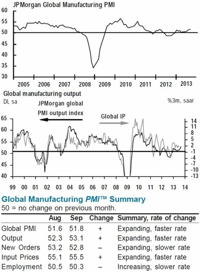 Aktivita v globálním zpracovatelském průmyslu rostla v září nejrychlejším tempem za dva a čtvrt roku. Růst se soustředil ve vyspělých ekonomikách, uvedla banka JPMorgan. Ta sestavuje globální index aktivity na základě údajů z anket u firemních nákupních manažerů v jednotlivých velkých ekonomikách světa. Index aktivity se minulý měsíc zvýšil na 51,8 bodu ze srpnové úrovně 51,6 bodu a byl nejvýše od června 2011. Drží se tak nad hranici 50 bodů, která odděluje růst aktivity od jejího poklesu. Na zaměstnanosti se ale růst průmyslové aktivity příliš neprojevuje. Ukazatel zaměstnanosti ve zpracovatelském sektoru se snížil o půl bodu na 50,3 bodu.