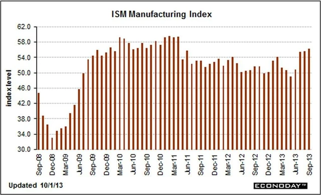Podle ISM naopak expanze ve zpracovatelském sektoru v září nečekaně zrychlila na 56,2 bodu. Očekávalo se přitom, že mírně zpomalí na 55 bodů ze srpnových 55,7 bodu. Index nových zakázek mírně klesl na 60,5 bodu ze 63,2 bodu v srpnu, stejně jako klesly zakázky na export na 52 bodů z 55,5 bodu. Produkce se zlepšila jen mírně na 62,6 bodu ze 62,4 bodu. zato zaměstnanost vyskočila na 55,4 z 53,3 bodu.