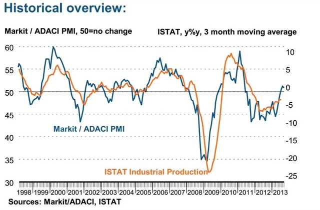 Index nákupních manažerů v Itálii v září mírně sklouzl z 28měsíčního maxima, kterého dosáhl v srpnu. Spadl na 50,8 bodu z 51,3 bodu, stále se však nachází nad hranicí padesáti bodů, která odděluje expanzi od kontrakce.