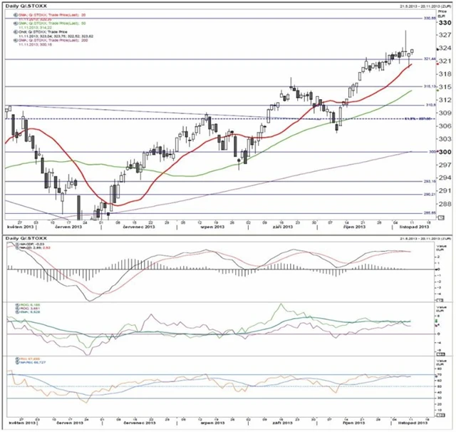 Technická analýza indexů S&P 500, DAX a Stoxx 600.