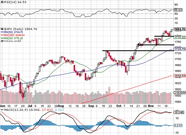 V novém týdnu si odpočineme – ve čtvrtek je Den díkůvzdání a další den si mnozí investoři berou dovolenou, obchodování bude zkrácené a mělo by být klidné. Den díkůvzdání patří do býčího sezónního patternu, ale při současné rally o něm nemá význam psát.