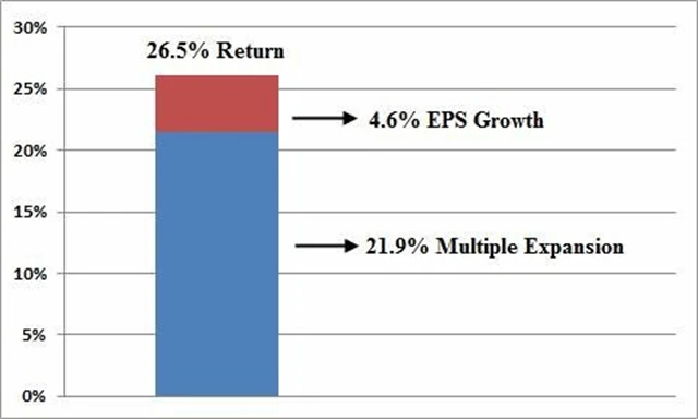 Americké akcie letos zdražily zhruba o čtvrtinu. Jen asi z pětiny se na tom ovšem podílel růst ziskovosti firem obchodovaných na burze. Zbytek připadl na rostoucí ocenění. To se tak dostalo nad svůj dlouhodobý průměr.