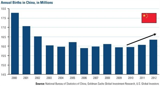 S tím vším souvisí také růst poptávky po komoditách. Pro zajímavost, v USA každý nově narozený spotřebuje za život v průměru 1,3 milionu tun kovů, minerálů a paliv. V Číně zatím HDP na obyvatele dosahuje zhruba jen pětiny běžné úrovně ve vyspělém západním světě. A nemusíme chodit tak daleko, Jižní Korea má HDP na obyvatele 22 590 USD, Hongkong 36 796 USD, zatímco Čína jen 6 188 USD (údaje za rok 2012). Rezervy jsou tedy značné a vzhledem k potenciálnímu zvýšení počtu obyvatel se může jednat o exponenciální nárůsty poptávky po komoditách, které nemusí být snadné uspokojovat.