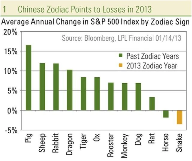 Minulý týden začal v Číně rok vodního hada. Jaký bude pro akcie, teprve uvidíme, kdyby ale minulost uměla předpovídat, nebude to žádná sláva. Akcie v letech hada totiž dosahují v průměru nejhorší výkonnosti. Od roku 1950 je totiž had pro akcie nejméně příznivým znamením.