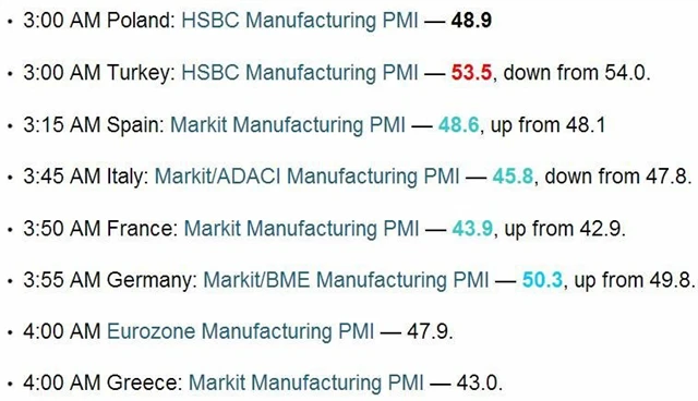 Německo nezklamalo a mírně se vyhouplo udrželo nad 50 bodů (50,3 z lednových 49,8). Za celou eurozónu index zůstal na 47,9 bodu. V Řecku je únorových 43 bodů 11měsíčním maximem.