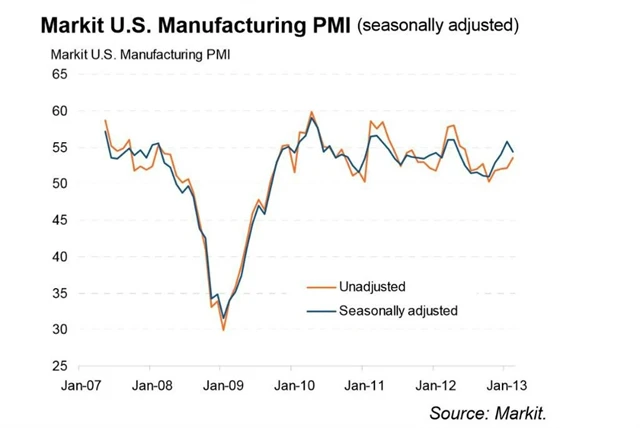 Ve Spojených státech vycházejí dva indexy. Ten od společnosti Markit dopadl hůře, než se čekalo (54,3 bodu místo 55,2 bodu, v lednu 55,8 bodu).