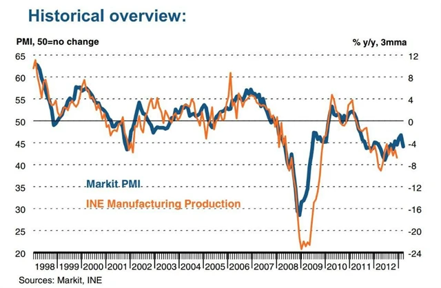 Index nákupních manažerů ve Španělsku v březnu dále klesal - dostal se na nejnižší hodnotu od října 2012. Nejhorší výsledky přinesla zaměstnanost, která zaznamenala největší propad od prosince 2009.