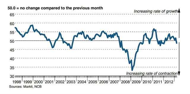V Irsku index nákupních manažerů ve zpracovatelském sektoru spadl v březnu pod padesát bodů kvůli slabé poptávce a oproti únorovým 51,5 bodu dosáhl pouze 48,6 bodu.