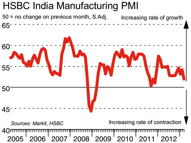 Podmínky v indickém průmyslu se v březnu opět zlepšily, ovšem růst objemu nových zakázek zpomalil na nejnižší tempo za 16 měsíců. To mělo za následek pokles průmyslového PMI na 52 bodů z únorových 54,2 bodu. Index je tedy nejníže za 16 měsíců.