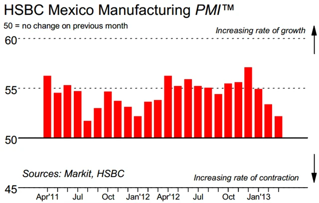 V Polsku HSBC index nákupních manažerů ve zpracovatelském sektoru spadl meziměsíčně poprvé od září 2012. Stále zůstává v zóně pod padesáti body a oproti únoru navíc ztratil téměř celý bod. Za březen dosáhl hodnoty 48 bodů (únor: 48,9 bodu)