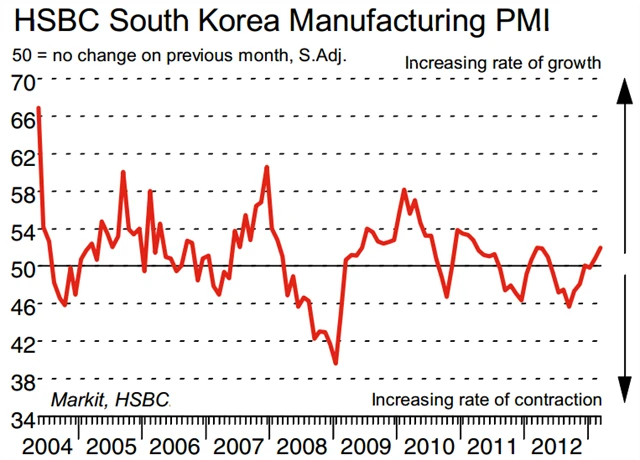 Strach z války se severním sousedem se v PMI za březen ještě neprojevil. Druhé zvýšení průmyslového PMI za sebou na 52 bodů z únorových 50,9 bodu znamená nejvyšší hodnotu za uplynulý rok. Silné byly především subindexy tvorby pracovních míst, výroby a nových zakázek.