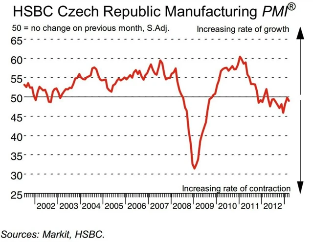 I u nás došlo ke zhoršení obchodních podmínek ve výrobním sektoru. HSBC index nákupních manažerů ve zpracovatelském sektoru spadl na 49,1 bodu po únorovém bezmála stabilním výsledku 49,9 bodu. Index se pod hranicí 50 bodů nachází už dvanáctý měsíc za sebou, přestože průměr za první čtvrtletí (49,1 bodu) byl nejvyšší za jakékoli čtvrtletí v této řadě.