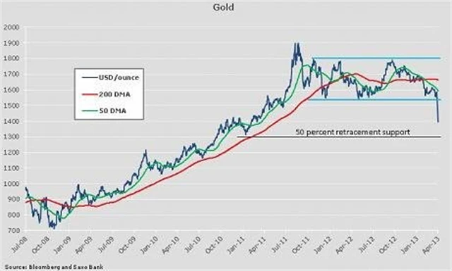Aleš Jandejsek (brokerjet ČS): Za pseudodůvod poklesu ceny považuji horší data z Číny (HDP), možný výprodej zlatých zásob Kypru. Dobrým důvodem by naopak mohla být Indie (největší trh, zlato se tam používá pro platbu za íránskou ropu a jiným platbám, Indové kumulují zlato jako uchovatel hodnoty po celé generace, milují šperky a podobně), která omezila dovoz zlata vyšším clem. Ale ani to nebude zřejmě hlavní důvod největšího propadu ceny zlata za 30 let.