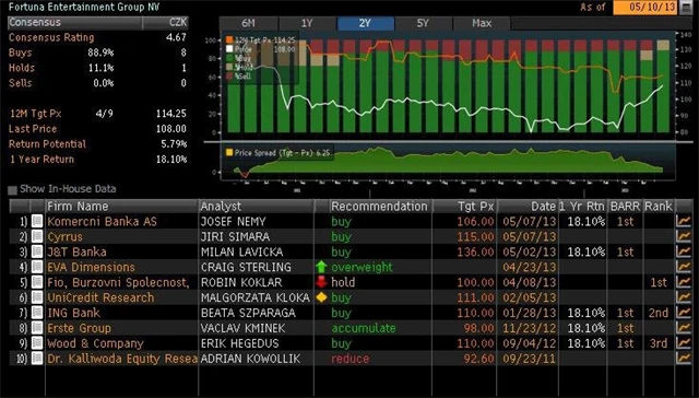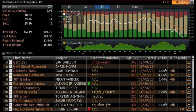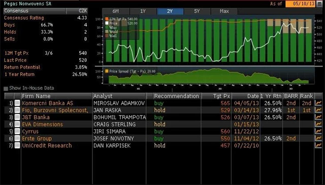 Jaký názor mají na akcie Telefóniky C.R., Fortuny a Pegasu Nonwovens domácí a zahraniční analytici? Jaké jsou jejich dvanáctiměsíční cílové ceny a jak znějí jejich aktuální investiční doporučení? Nabízíme jejich přehled, jak jej k 10. 5. 2013 shromáždila agentura Bloomberg.