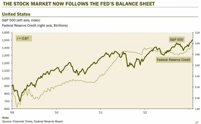 Korelace bilance Fedu a vývoje cen amerických akcií je vysoká.