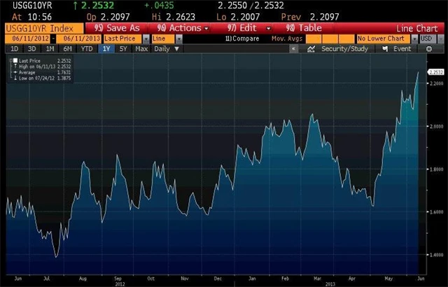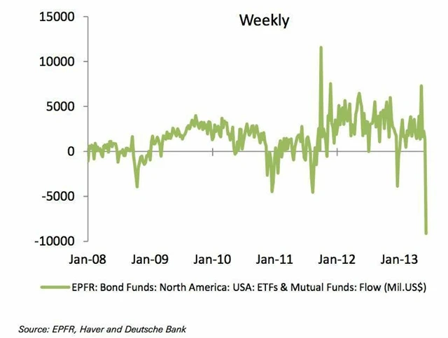 Investoři se zbavují bondů, protože ty ztrácejí na hodnotě (prudký růst výnosů se promítá do klesající ceny). Na výprodejích mají patrně velký podíl obavy investorů, že by Fed mohl omezit program nákupu bondů. Dluhopisové fondy zažily v minulém týdnu historicky největší týdenní odliv peněžních prostředků.