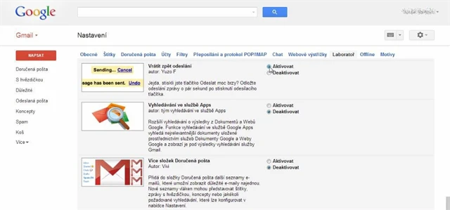 Aktivace: Nastavení > Laboratoř > Vrátit zpět odeslání