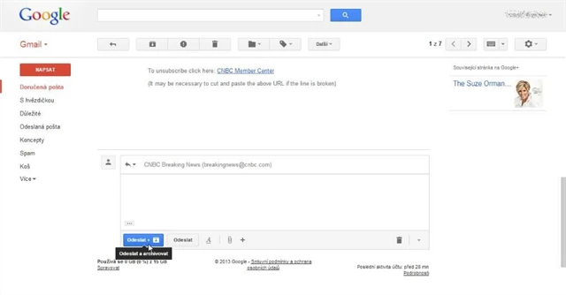 Odpovídáte-li na doručenou zprávu, kterou již více nebudete potřebovat, tlačítko Odeslat a Archivovat si zamilujete. Spolu s odesláním odpovědi jím příchozí e-mail vyřadíte ze složky s doručenou poštou, díky čemuž se ve své schránce nikdy neztratíte. A pokud nakonec zjistíte, že archivovanou zprávu znovu potřebujete, stačí v levém menu kliknout na Více a následně na Všechny zprávy. Tím získáte přístup i k archivovaným položkám, které můžete libovolně spravovat.