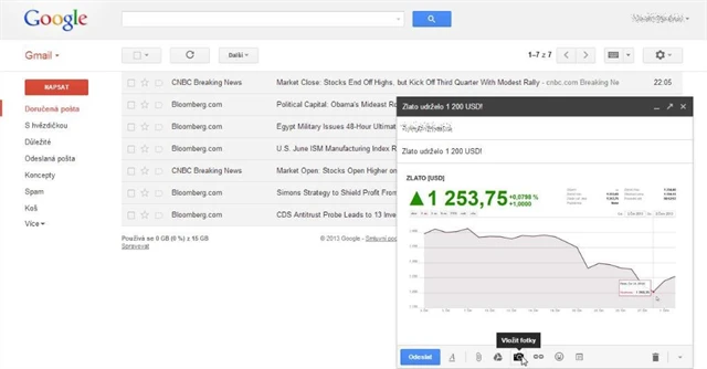 Tato funkce je užitečná, posíláte-li si například s kolegy v práci důležité grafické přílohy, které je jinak snadné přehlédnout. Namísto nenápadného odkazu pod zprávou se obrázky či grafy budou zobrazovat automaticky přímo v těle zprávy. Vkládat navíc můžete jak obrázky z disku, tak z webu. Při psaní e-mailu stačí kliknout na ikonku plus a poté na ikonku fotoaparátu.