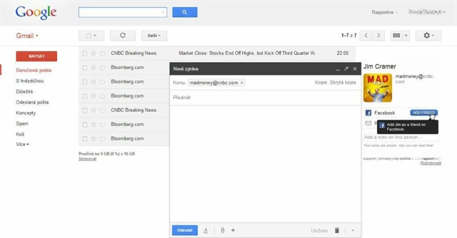 Externí doplněk Rapportive ocení zejména aktivní uživatelé sociálních sítí. S jeho pomocí stačí, abyste při psaní e-mailu do kolonky "Komu" napsali e-mailovou adresu, a hned se s danou osobou můžete spojit i na Facebooku, Twitteru, LinkedInu nebo Google+. A to za těch pár kliknutí navíc stojí, nemyslíte?