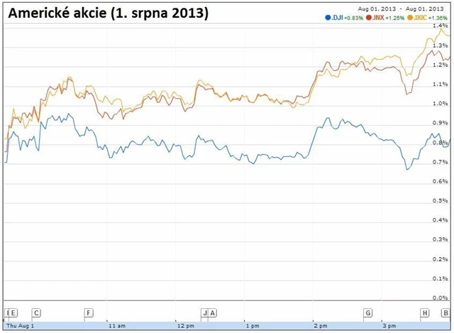 Finanční výsledky za druhé čtvrtletí ve čtvrtek reportovaly například mediální společnost Time Warner Cable (+3,10 %), výrobce spotřebního zboží Procter & Gamble (+1,64 %), energetická společnost ConocoPhillips (+1,82 %), producent ropy a zemního plynu Chesapeake Energy (+7,08 %), ropný gigant Exxon Mobil (-1,10 %) nebo těžař Apache (+1,83 %).