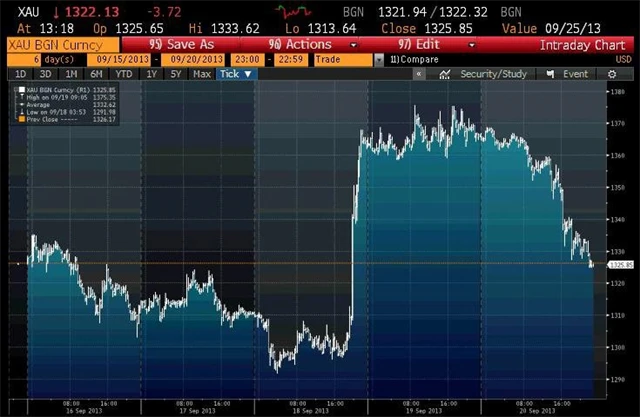 Zlato zdražilo o 4,3 % po oznámení Fedu, že se omezení kvantitativního uvolňování odkládá. Ve čtvrtek vyskočilo na 1 374,54 USD, čímž překonalo vrchol z 11. září na úrovni 1 367 USD. Zisky ale neudrželo a po strmém pátečním pádu zakončilo týden s mírnou ztrátou.