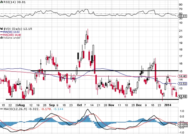 Index volatility VIX během týdne klesl o 12 % a v pátek se přiblížil ke svým minimům. Mohl by se opět začít vracet směrem k horní linii dlouhodobého rozpětí, ale dokud zůstane mezi 12 a 15, představuje pro akcie pozitivní signál.