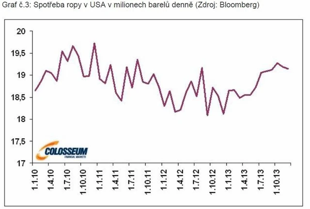 Spotřeba ropy v USA v posledních dvou letech stoupá a loni v říjnu se vyšplhala na nejvyšší úroveň od poloviny roku 2011. To zároveň pomohlo nahradit zpomalení poptávky v Číně, která je druhým největším spotřebitelem ropy na světě.