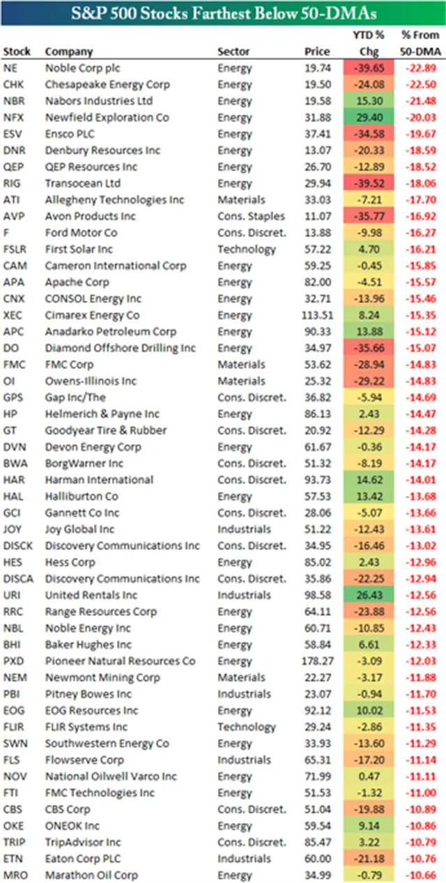 Řada uvedených akcií je z energetického sektoru, do kterého v období klesajících cen ropy investují buď dlouhodobí hráči na základě konkrétního fundamentu firem, nebo hráči, kteří mají rádi riziko a doufají v obrat ve vývoji trhu s ropou.
