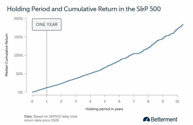 Investoři by si měli pamatovat jedno pravidlo: Investování je o tom, kolik na trhu strávíte času, nikoli o tom, jak se trefujete do různých pohybů cen. Společnost Betterment sestavila ojedinělý graf indexu S&P 500, který ukazuje různé chování investic ve všech myslitelných obdobích.