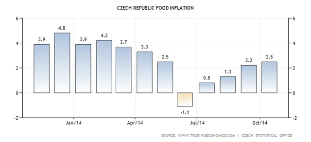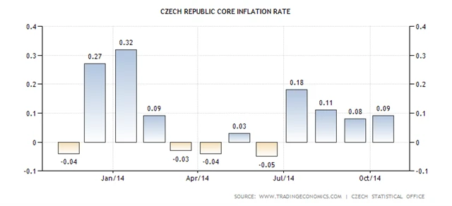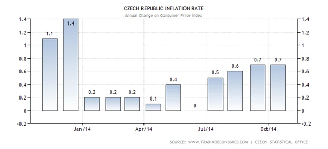 Na první pohled se zdá, že ČNB má důvod zapíjet úspěch. Celková meziroční míra inflace sice není vyšší než před rokem (0,9 % v říjnu 2013 vs. 0,7 % v říjnu 2014), ovšem ta měnově-politická, ve které je stanoven cíl ČNB a která je očištěna o (primární efekt) změny nepřímých daní, ano (0,1 % vs. 0,5 %). Ještě evidentnější se zdá být úspěch ČNB z hlediska poptávkové inflace (inflace bez potravin, paliv a daní), která je oproti říjnu 2013 vyšší o 1,3 procentního bodu a poprvé od roku 2009 není záporná. Zdá se tedy, že minimálně z hlediska inflace dosáhla ČNB kýženého efektu.