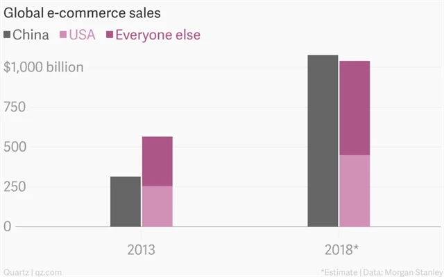 Singles Day je jen začátek. Čínský trh on-line nakupování neustále roste. Do roku 2018 by tržby z e-commerce v Číně měly přesáhnout celkové tržby ve zbytku světa, odhaduje Morgan Stanley.