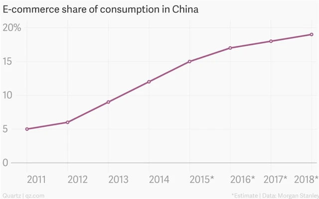 S tímto tempem růstu bude e-commerce představovat jednu pětinu hotovosti utrácené v Číně.