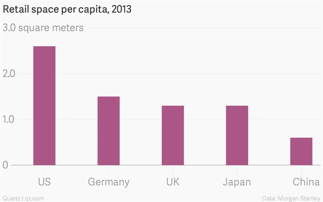 Dalším důvodem je skutečnost, že kamenných obchodů je v Číně ve srovnání s vyspělými zeměmi pomálu.