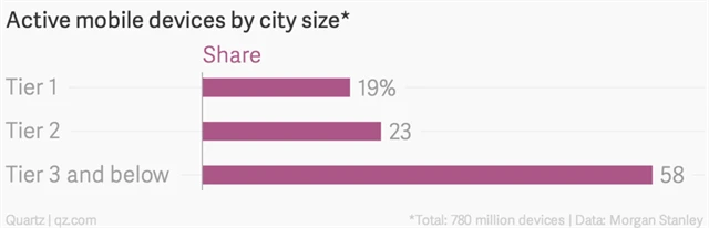 Tento trend je patrný zejména mimo velká urbanizovaná centra. I to částečně vysvětluje, proč většina růstu plyne z menších měst. Pochází z nich téměř 60 % aktivních mobilních zařízení. Mimochodem, čtvrtina on-line nákupů v první polovině roku 2014 byla uskutečněna pomocí mobilu.