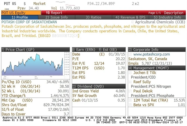 Zemědělci potřebují hnojiva, která jsou výsadou firmy Potash. Kromě těžby a zpracování potaše nabízí firma i doplňky a celou řadu chemických produktů. Akciím firmy se v posledních letech nedařilo kvůli slabému světovému růstu a převisu nabídky, růst populace a světových ekonomik trend ale změní.