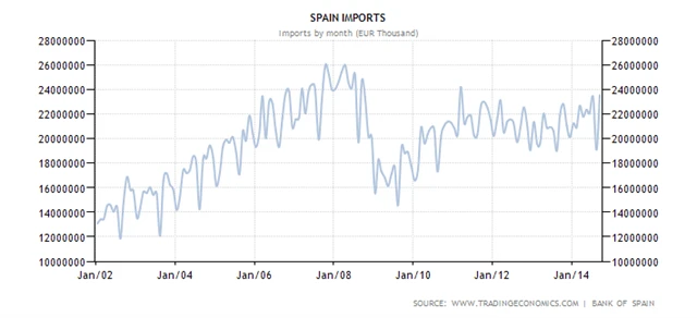 Ve Španělsku tedy nejde o exportně tažené oživení. Vyrovnání běžného účtu bylo dosaženo z převážné části vlivem masivního propadu životní úrovně španělského obyvatelstva.