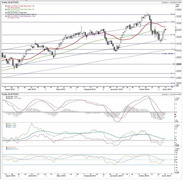 Technická analýza indexů S&P 500, DAX a Stoxx 600.
