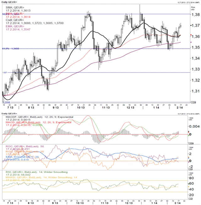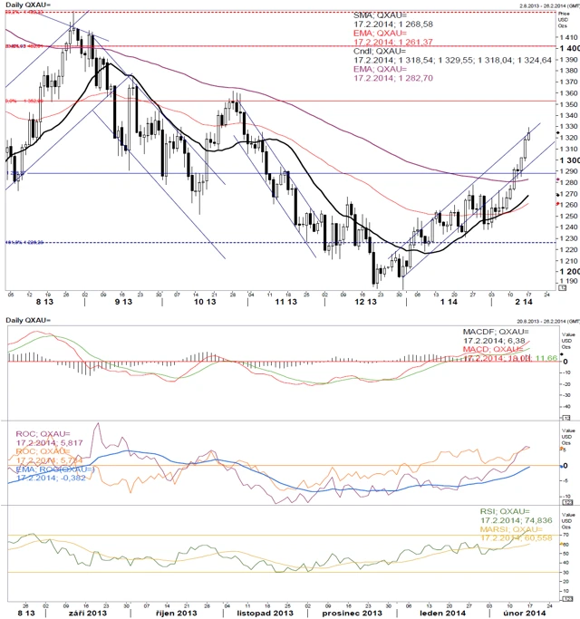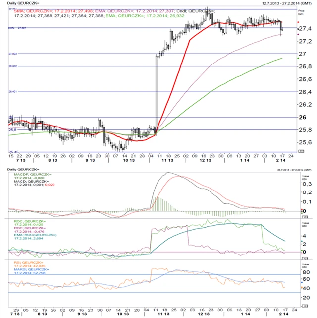 Fundamentální názor je občas krátkodobě vhodné doplnit technickou analýzou, která může napovědět, kterým směrem se kurz bude vyvíjet. (17. 2. 2014)