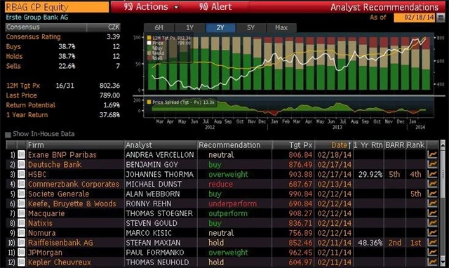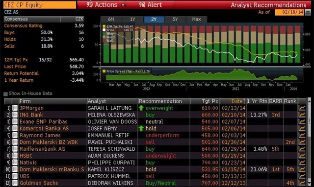 Jaký názor mají na akcie ČEZ a Erste Group Bank domácí a zahraniční analytici? Jaké jsou jejich dvanáctiměsíční cílové ceny a jak znějí jejich aktuální investiční doporučení? Nabízíme jejich přehled, jak jej k 18. 2. 2014 shromáždila agentura Bloomberg.