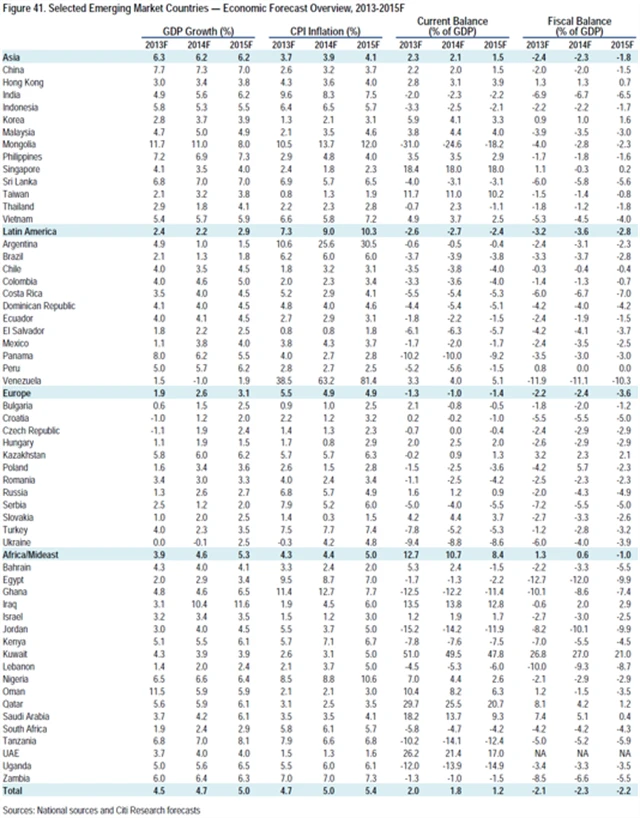 Citigroup nabízí i komplexní výhled ekonomik rozvíjejících se zemí.