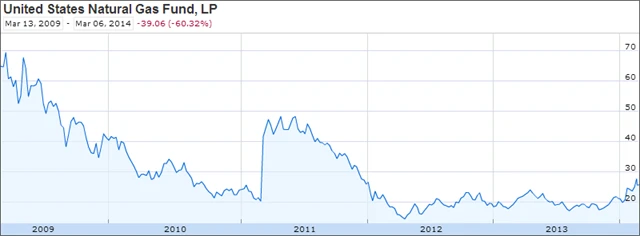 Jako první bych zmínil ETF s označením UNG (United States Natural Gas Fund), který sleduje cenu plynu. Cena prošla výraznou korekcí. Plyn v aktuální ukrajinské krizi může hrát jednu z hlavních rolí. Rusko může zamknout kohoutky a přestat dodávat plyn do celé EU. To by mohlo krátkodobě vyhnat cenu této komodity výše.