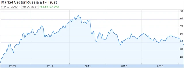 Druhým horkým tipem by mohl být jeden z ETF sledujících ruský trh, například ty s označením RBL nebo RSX. Jedná se více méně o spekulaci, jejíž výkon se bude odvíjet od vývoje krize na Ukrajině. Nicméně z dlouhodobého hlediska si myslím, že by ruský trh měl růst. I když se od něj odvrátí EU a USA, Rusko může prohlubovat expanzi a obchodní činnost v Číně a dalších asijských zemích.