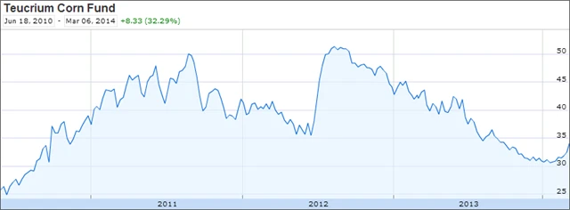 Předposledním tipem, který by mohl mít větší potenciál, je ETF se zkratkou CORN (Teucrium Corn Fund). Fond zaměřený na kukuřici zažil propad o zhruba 40 %. V posledních 3 měsících se ale pokles zastavil. Mohlo by se jednat o investici s větším růstovým potenciálem.