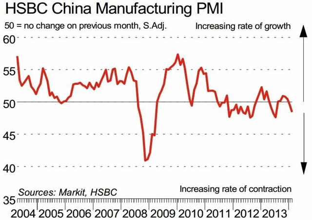 Index nákupních manažerů ve zpracovatelském v průzkumu agentury Markit a banky HSBC spadl v únoru podle očekávání na 48,5 bodu, rychlý odhad počítal dokonce s hodnotou o 0,2 bodu nižší. I tak jde o sedmiměsíční minimum.