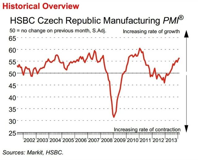 Index nákupních manažerů ve zpracovatelském sektoru v České republice v únoru vyskočil na 56,5 bodu z lednových 55,9 bodu. To představuje nejrychlejší expanzi od dubna 2011. Index se nad hladinou 50 bodů nachází už desátý měsíc a je více než 10 bodů nad minimem 46 bodů zaznamenaným v prosinci 2012.
